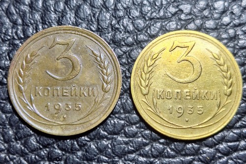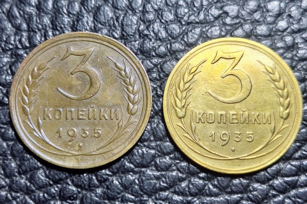 Всем привет, нужна помощь знатоков, искал на просторах интернета разновидности но пока не нашёл, суть вот в чем: есть 2 трёшки 1935г (с.т), помимо внутреннего спора патина или нет, обратил внимание на лучи, на той что помыта непрочекан лучей или так появился эффект от соударения?