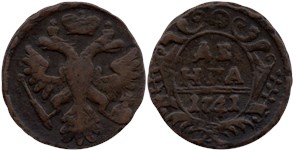 Надпись на реверсе: "ЦРЬIВЕ ЛИКИIКН АЗЬIВАНЪ ВСЕАРОУ СИI" (Царь и Великий Князь Иван Всея Руси), наверху титло. На аверсе изображён всадник с копьём, скачущий вправо, под ним буквы в две строки - "С" и "МН".