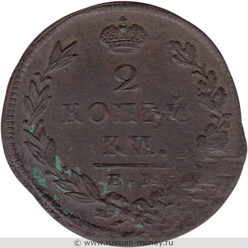 Монета отчеканена из меди, выпускалась с 1810 по 1830 год. Лицевая и оборотная стороны имеют выступающий по окружности кант с насечками. Частичное или полное отсутствие канта не является браком и обусловлено технологией чеканки.