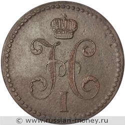 На аверсе монеты изображён вензель Николая I (большая стилизованная буква "Н", над ней большая имперская корона, внизу римская цифра "I" с горизонтальным рифлением).