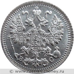 На аверсе монеты в центральной части помещено изображение Малого Государственного Герба Российской империи образца 1856 года. На гербе двуглавый орёл, коронованный двумя императорскими коронами, выше находится такая же корона, но большего размера, связанная с нижними коронами развевающейся лентой Андреевского ордена. Правой лапой орёл держит скипетр, левой - державу. На груди помещён московский герб: Святой Георгий на коне, поражающий копьём змеевидного дракона с крыльями. Московский герб окружает цепь ордена Святого апостола Андрея Первозванного. На поднятых вверх крыльях орла расположены гербы восьми царств (по четыре на каждом крыле). На левом гербы царств: Казанского, Польского, Херсонеса Таврического, а также соединённые в один гербы великих княжеств: Киевского, Владимирского и Новгородского. На правом гербы царств: Астраханского, Сибирского, Московского и Великого княжества Финляндского. Хвост орла выполнен стилизованно. Слева от хвоста - буква "В", справа - буква "С" (инициалы минцмейстера монетного двора).