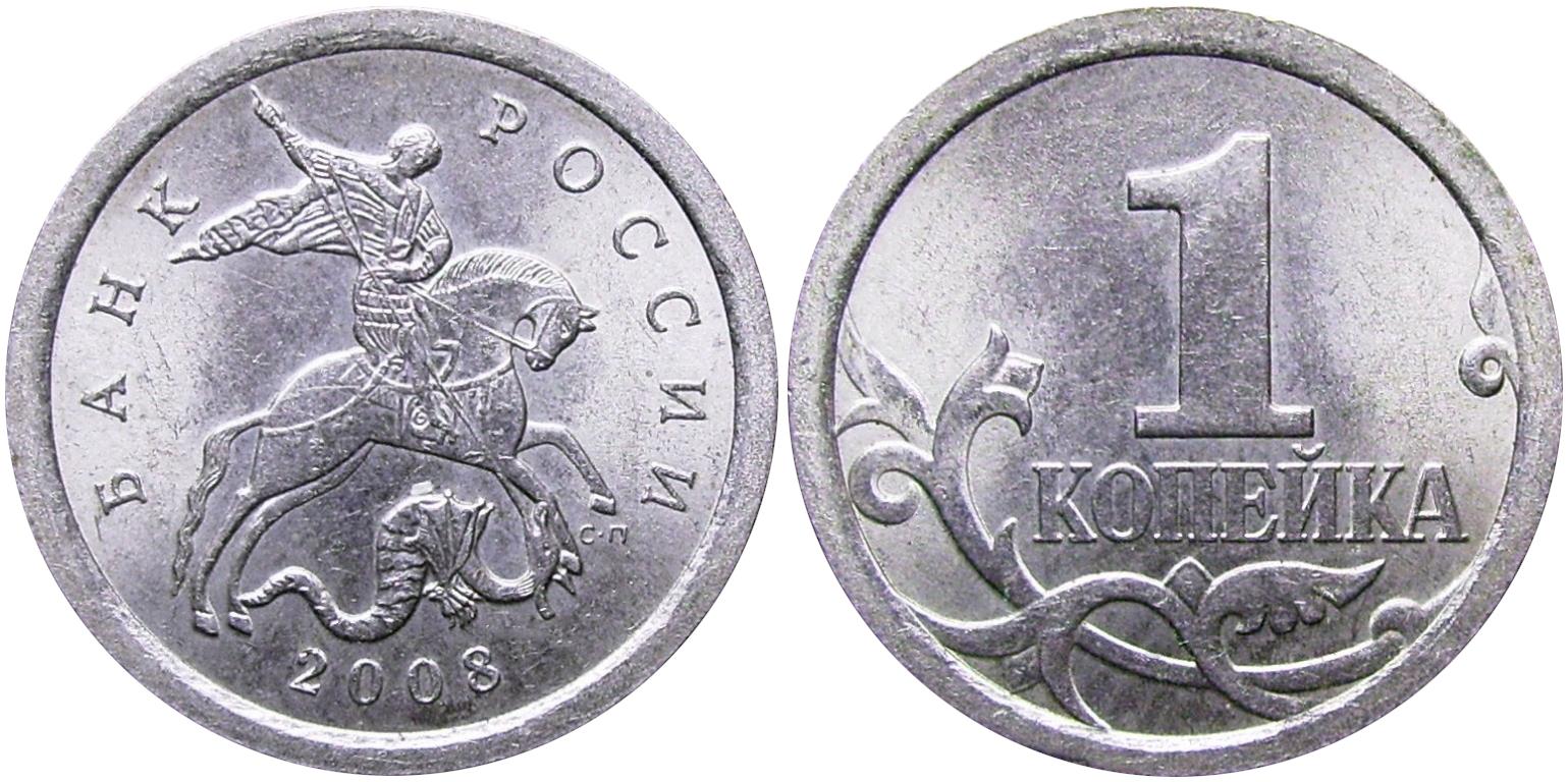 Цена монеты 1 копейка 2008 года на нумизматических аукционах и ярмарках