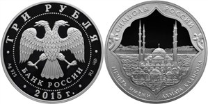 Монеты номиналом 3 рубля серии "Символы России" чеканились только в 2015 году в количестве 10 штук, по два варианта каждого вида (в обычном и цветном исполнении), всего 20 монет. Данные монеты посвящены достопримечательностям России, каждая содержит изображение в фигурной рамке, название серии и название достопримечательности. Изображения частично выполнены в технике лазерной гравировки.