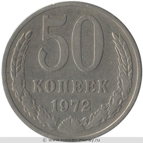Монеты номиналом 50 копеек 1972 года имеют 2 разновидностей, описанных ниже. Цена среди коллекционеров отличается в зависимости от сохранности, средняя стоимость около 220 р.